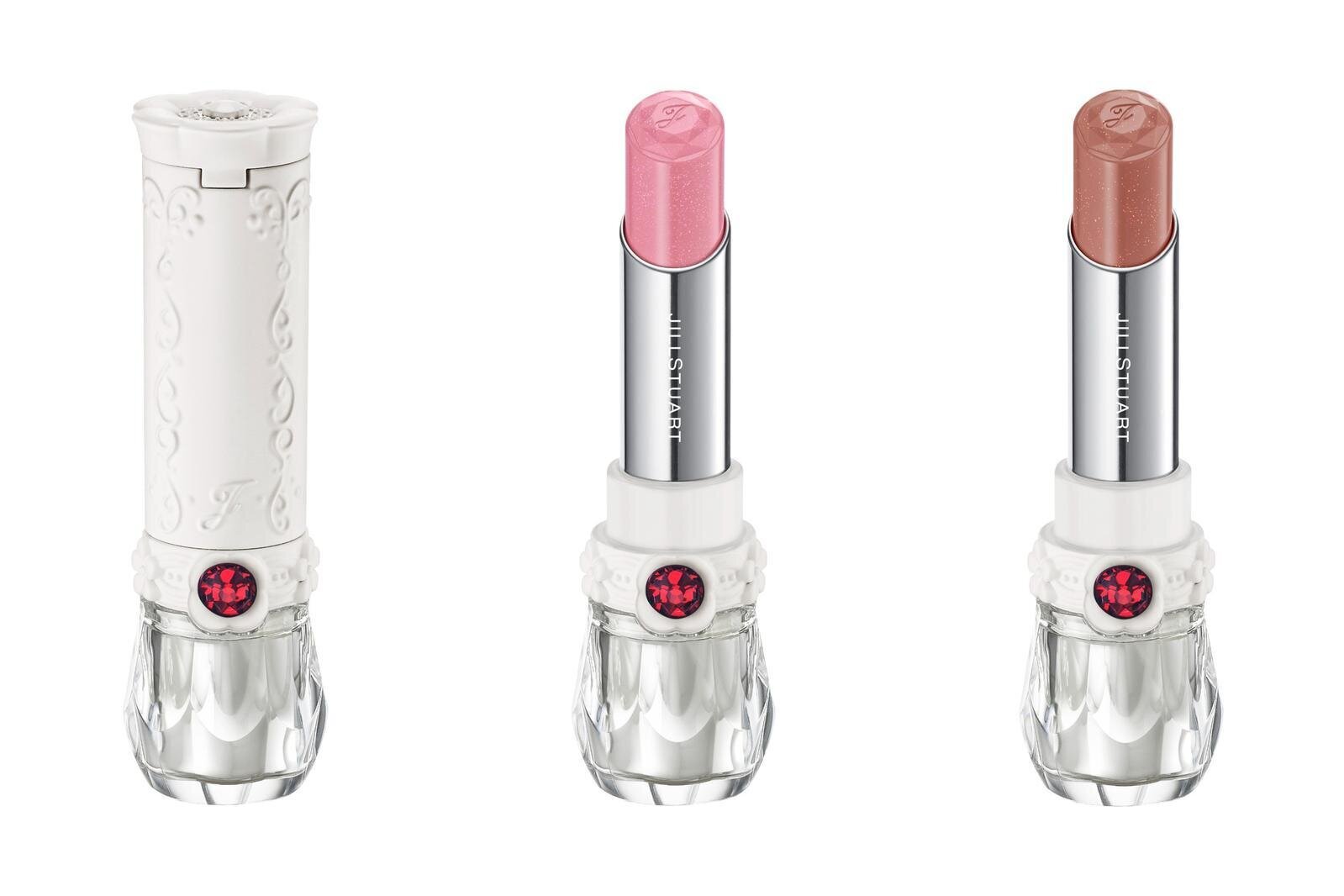 (From left) JILL STUART Petit Patisserie Lip Blossom Balm 104, 105,